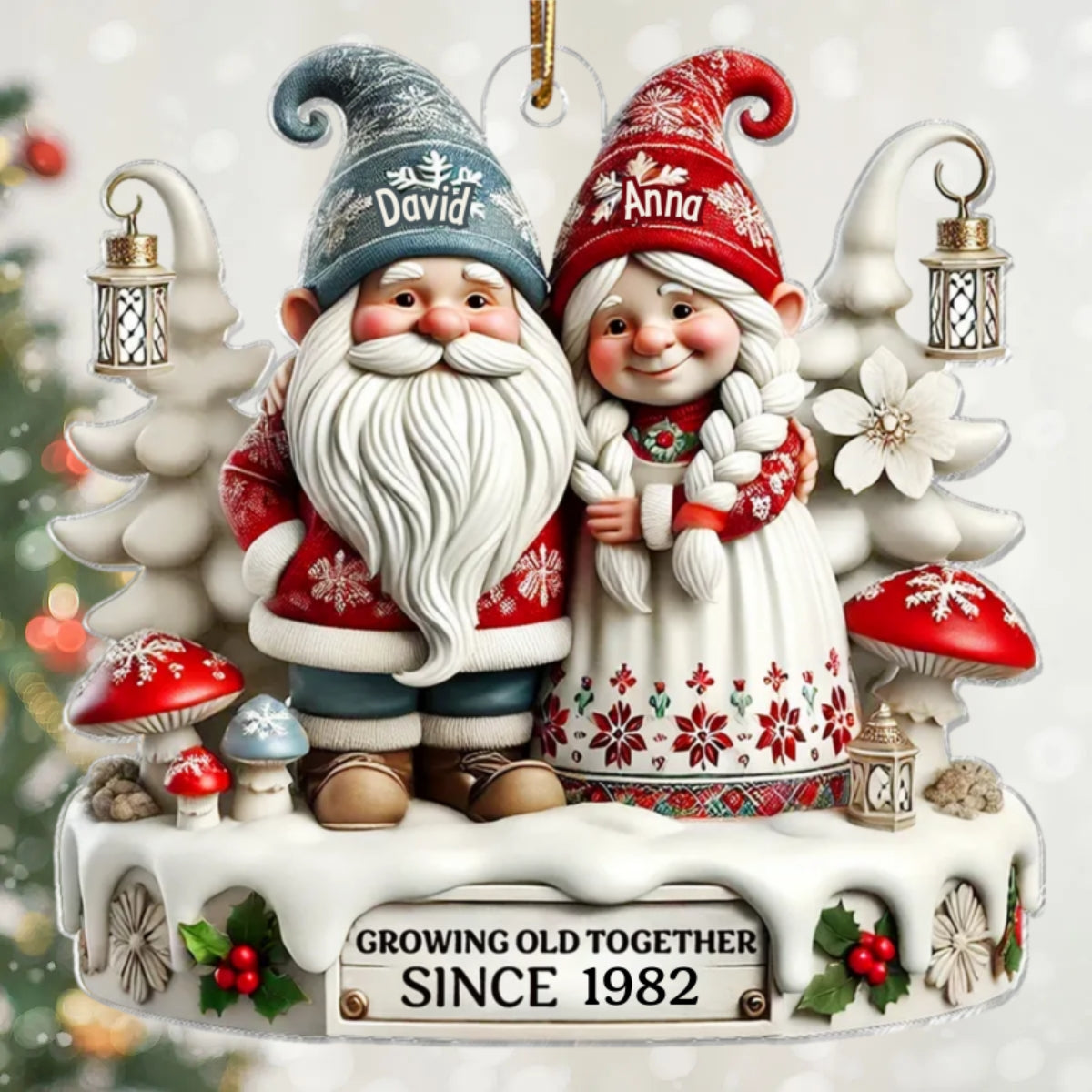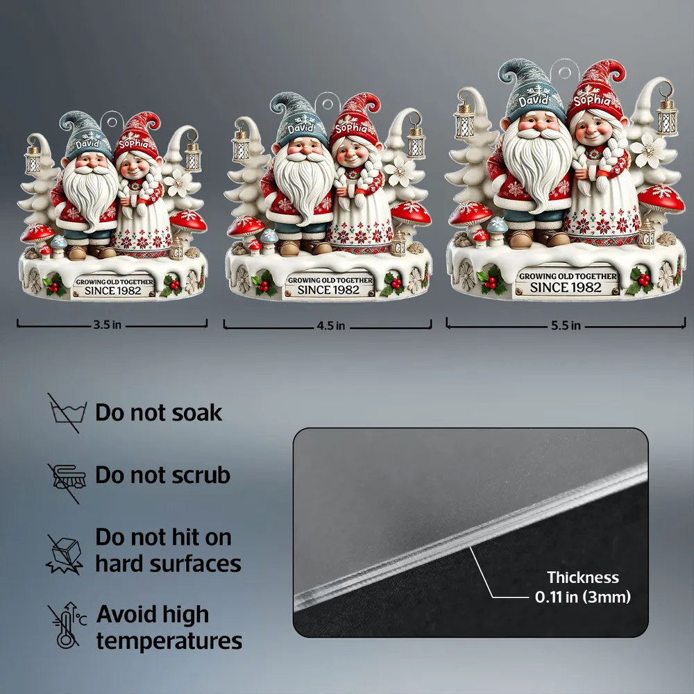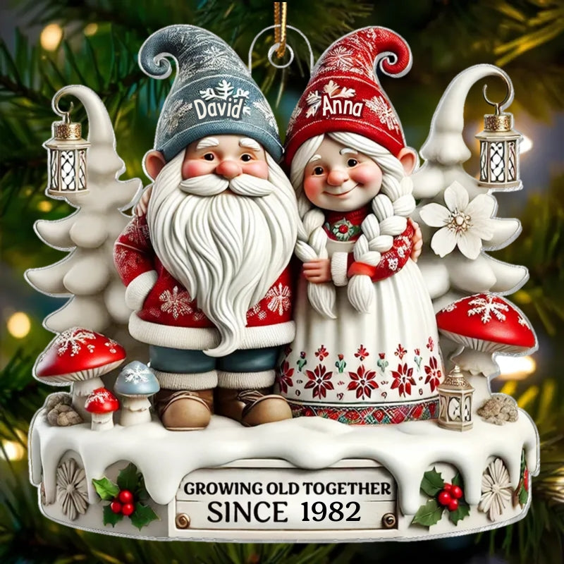 3D Effect Gnome Couple Together Custom Acrylic Christmas Ornament