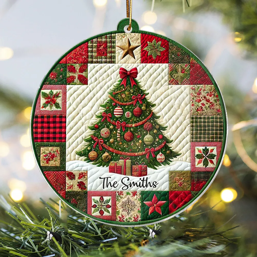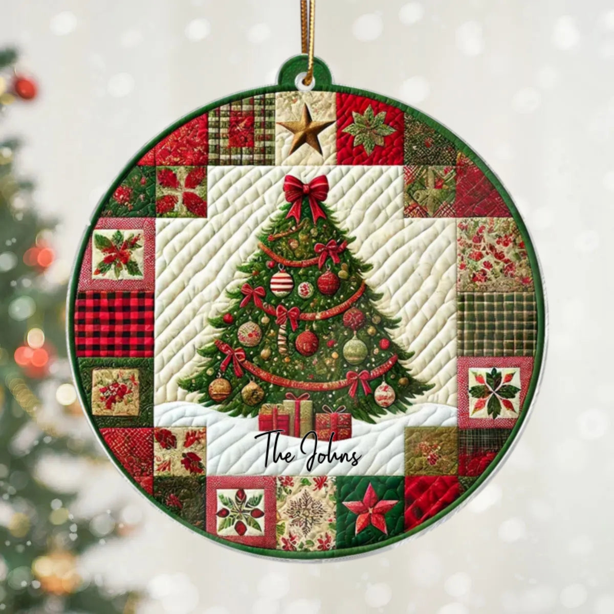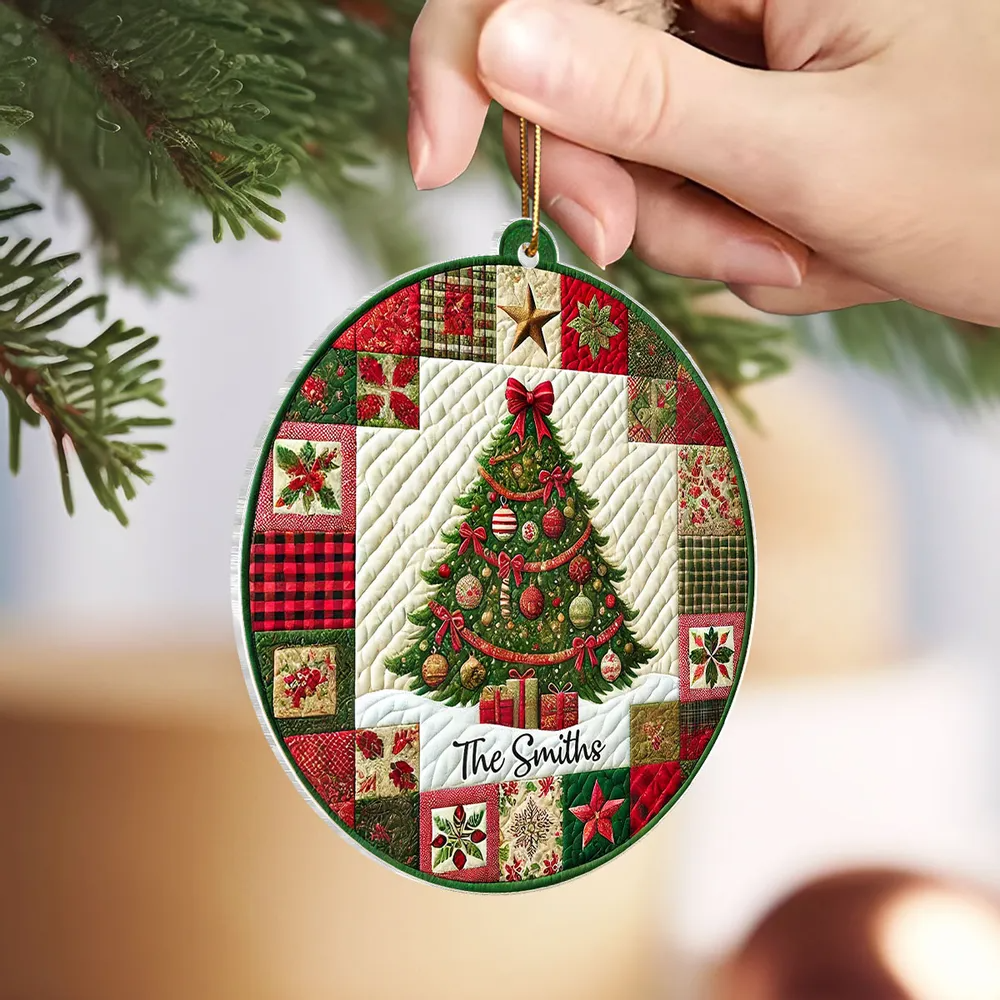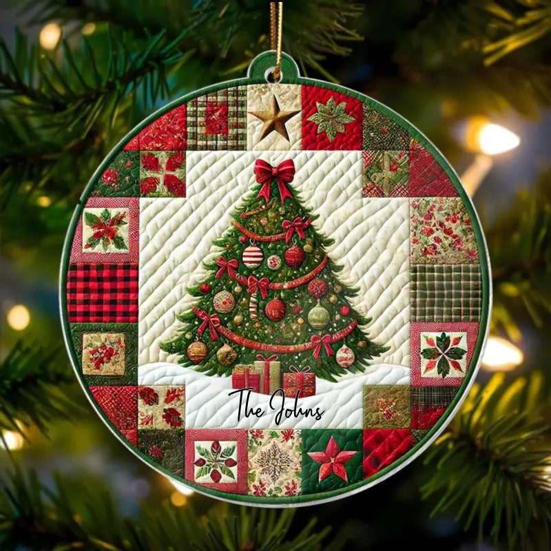3D Effect Quilting Patchwork Fabric Patterns Christmas Tree Custom Acrylic Christmas  Ornament