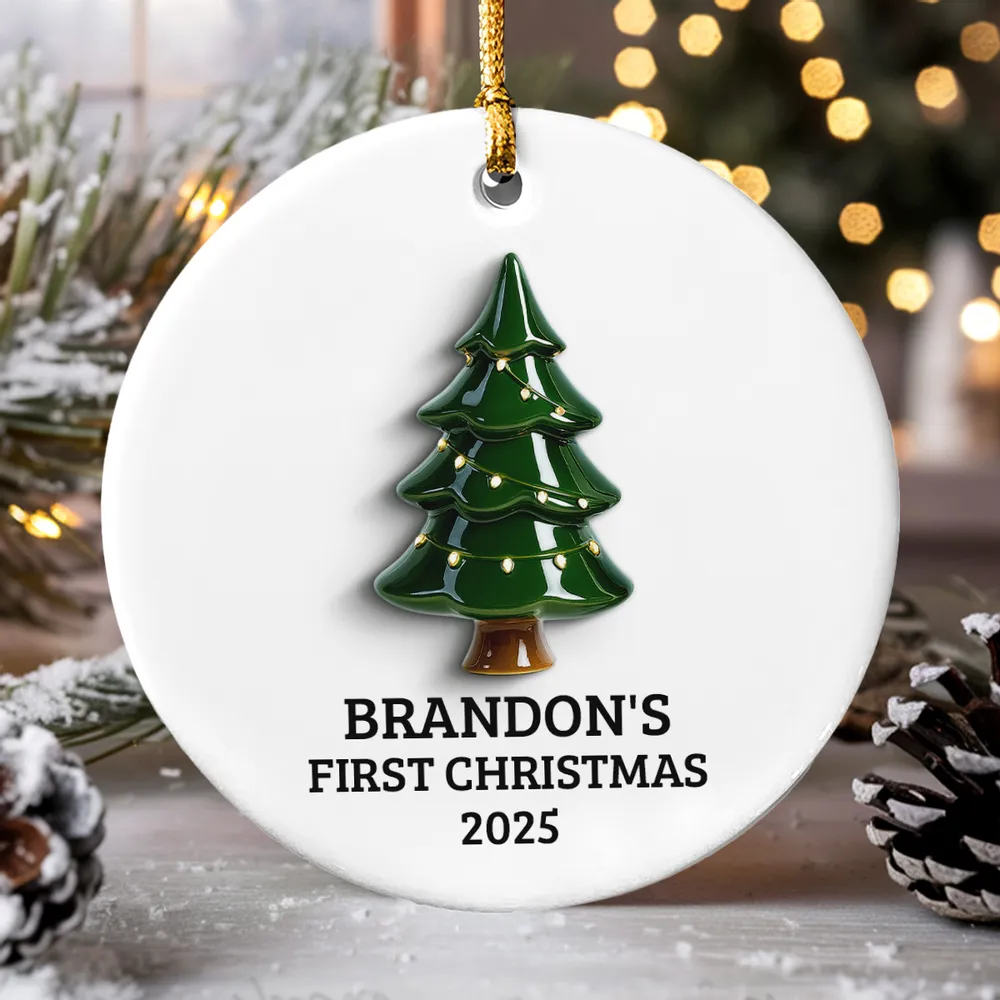 Celebrate your baby’s very first holiday season with the Baby First Christmas Thing 3D Effect Custom Ceramic Ornament. Featuring a playful toy car carrying a festive Christmas tree, this ornament is personalized with your child’s name and the year to create a keepsake you’ll treasure forever. It is crafted from high-quality ceramic for lasting durability. While it features a 3D effect design, it is a printed flat style that gives the look of depth and charm, perfect for adding joy and warmth to your Christmas tree.