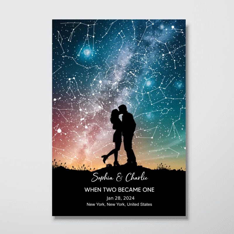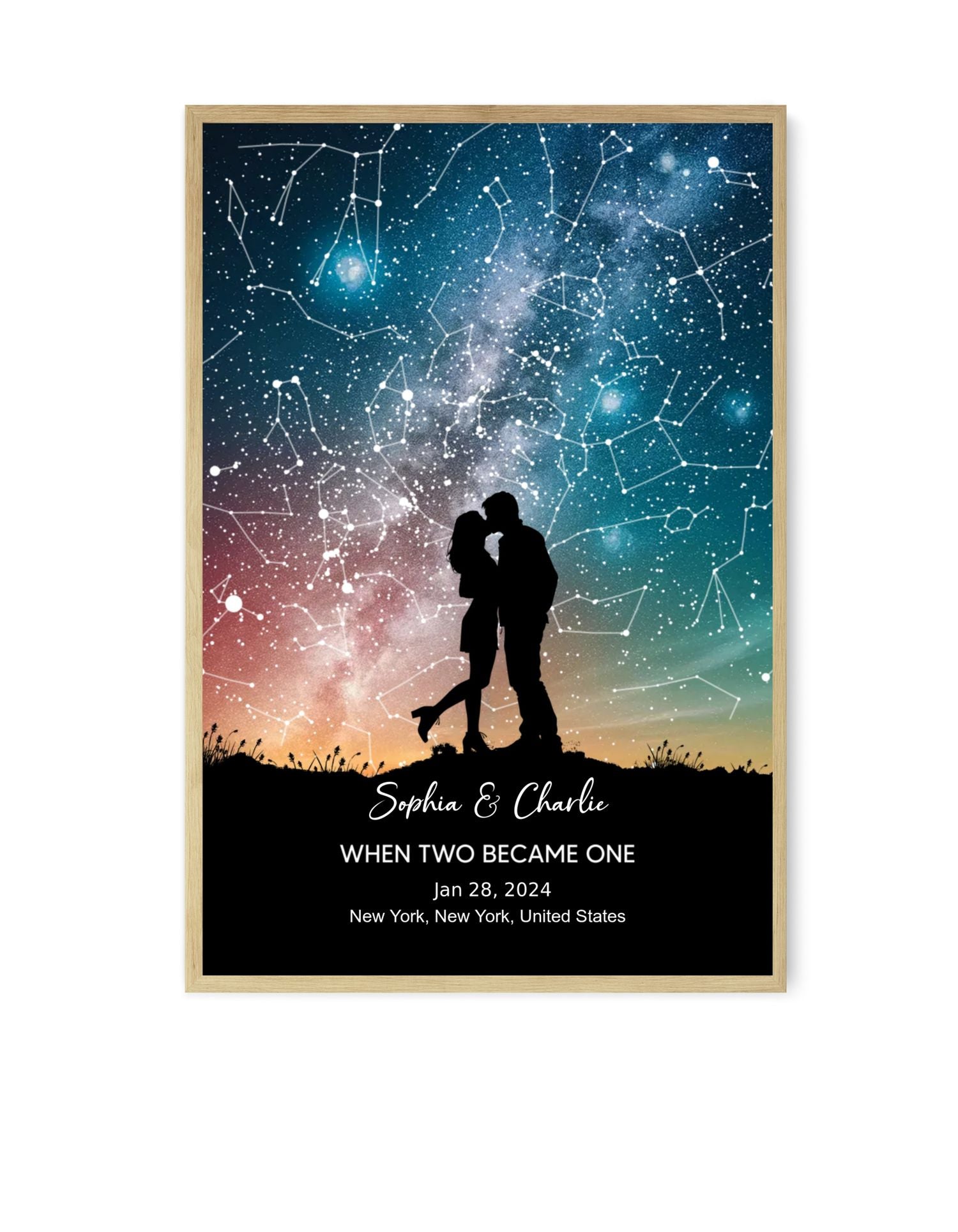 Couple Hugging Kissing Under the Starry Sky Custom Star Map Canvas/Framed Poster/Poster