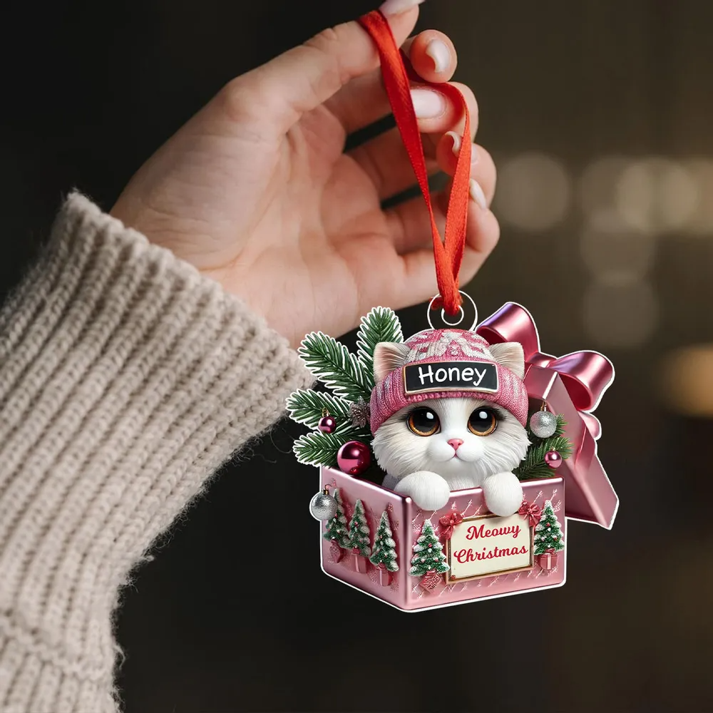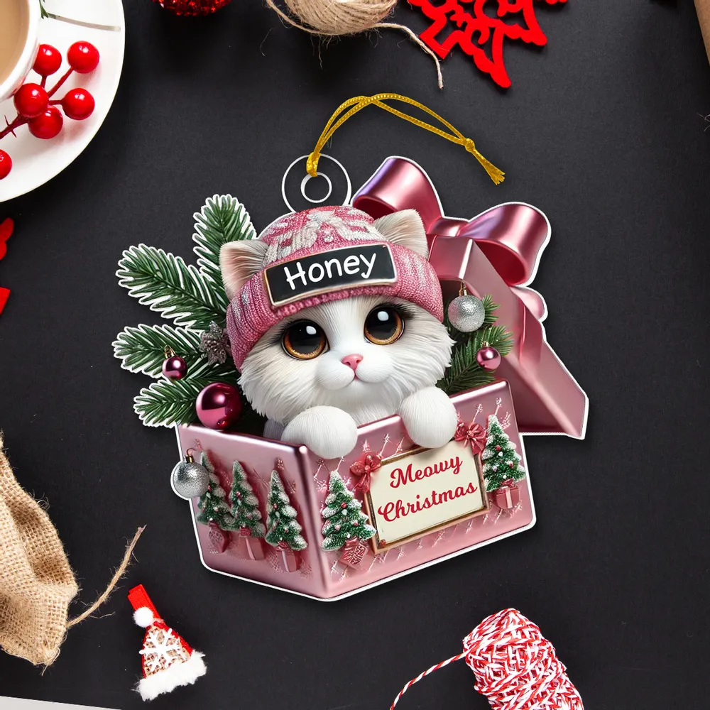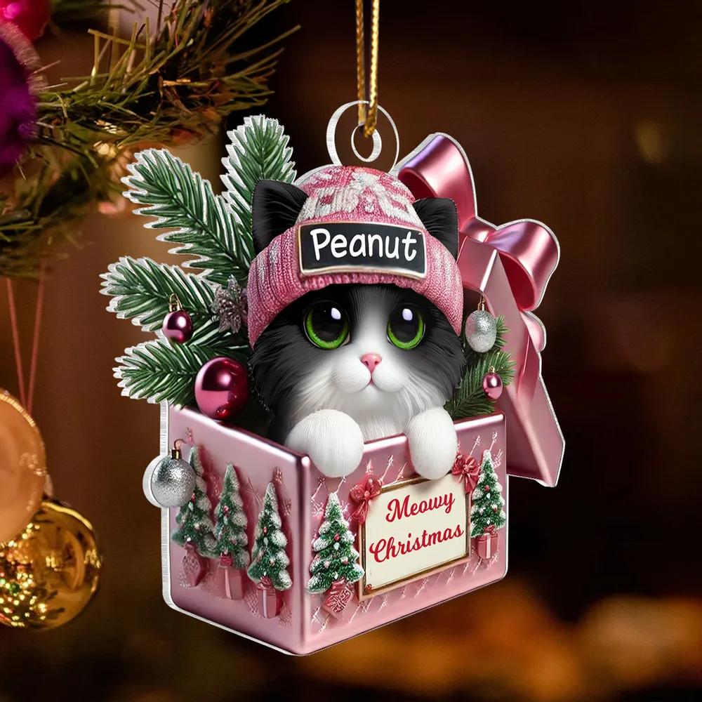 Cute Cat Inside Gift Box Custom 2D Flat Acrylic Christmas Ornament