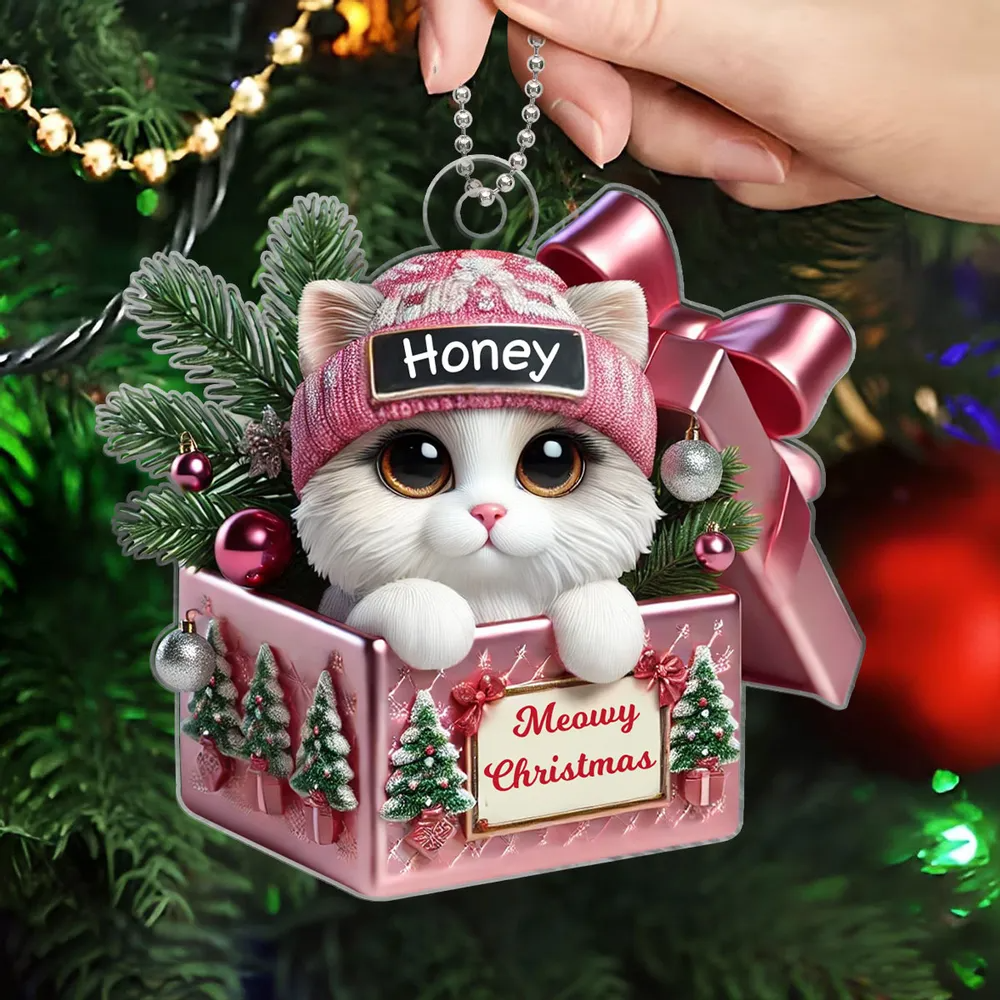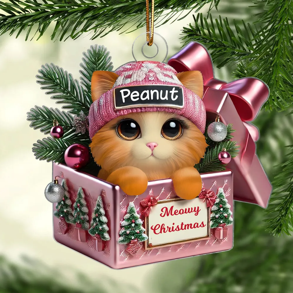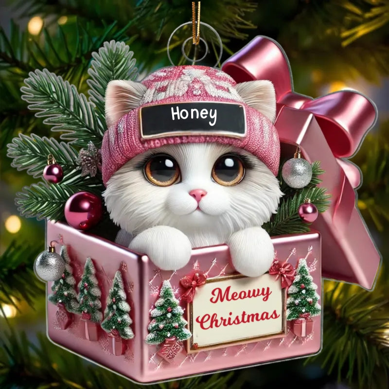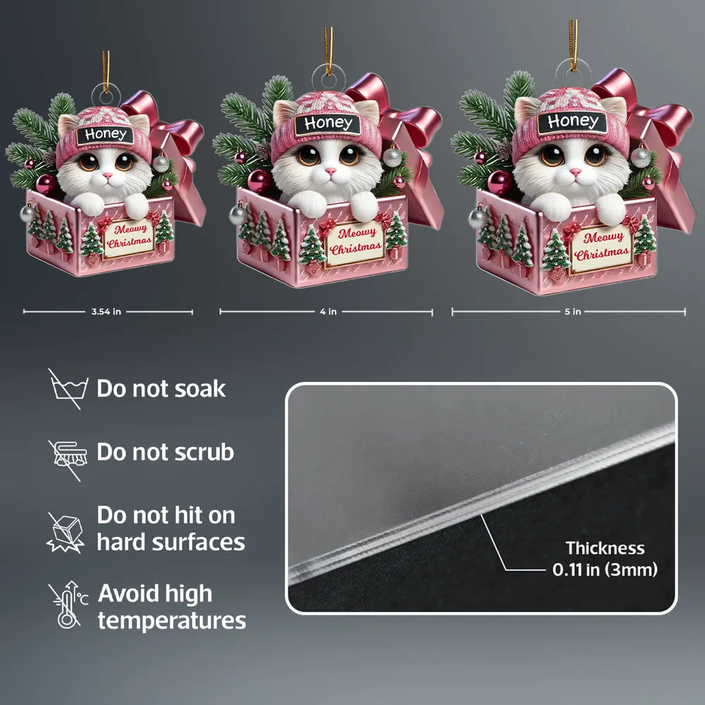 Cute Cat Inside Gift Box Custom 2D Flat Acrylic Christmas Ornament
