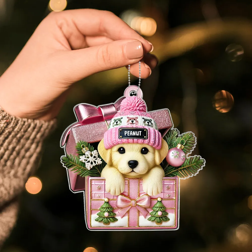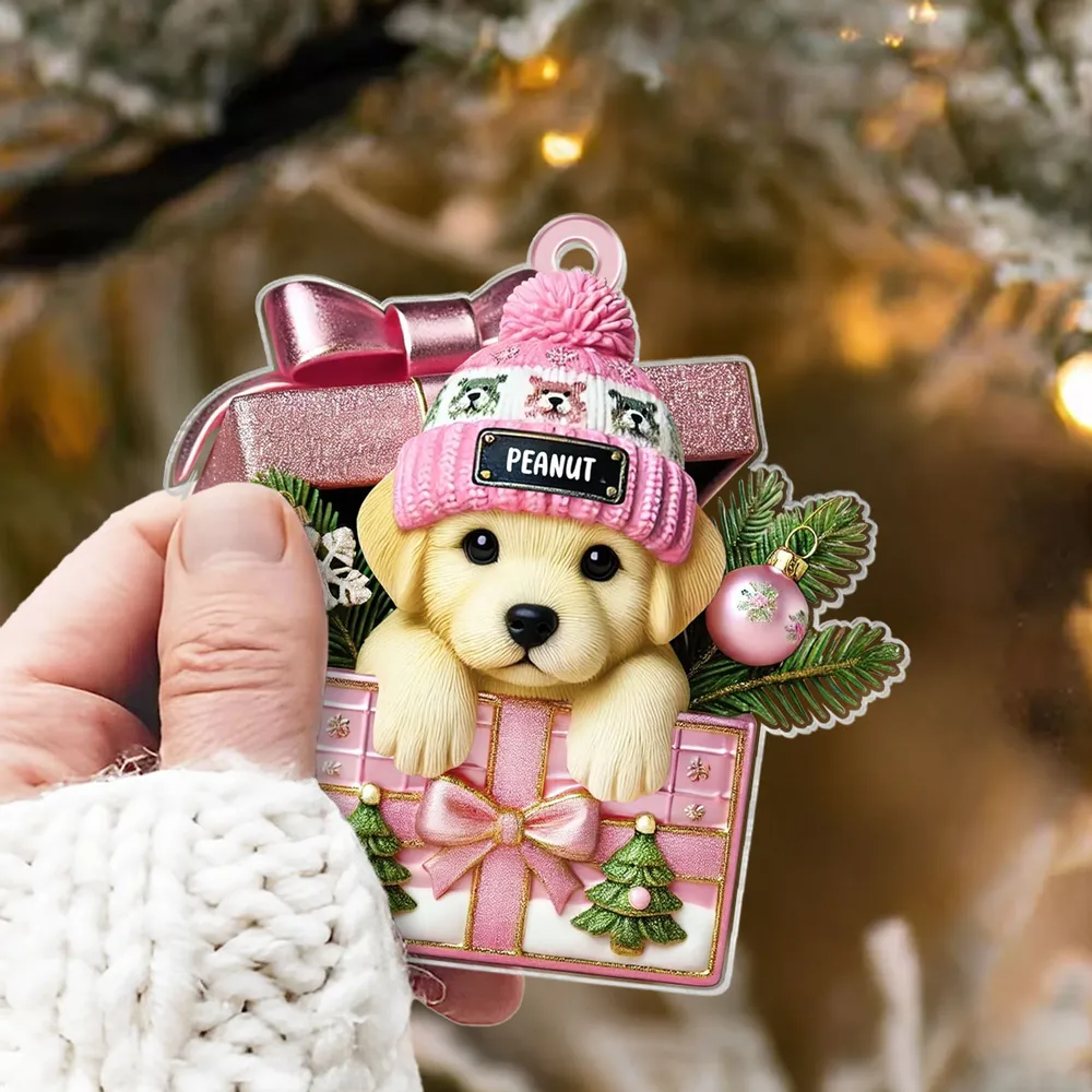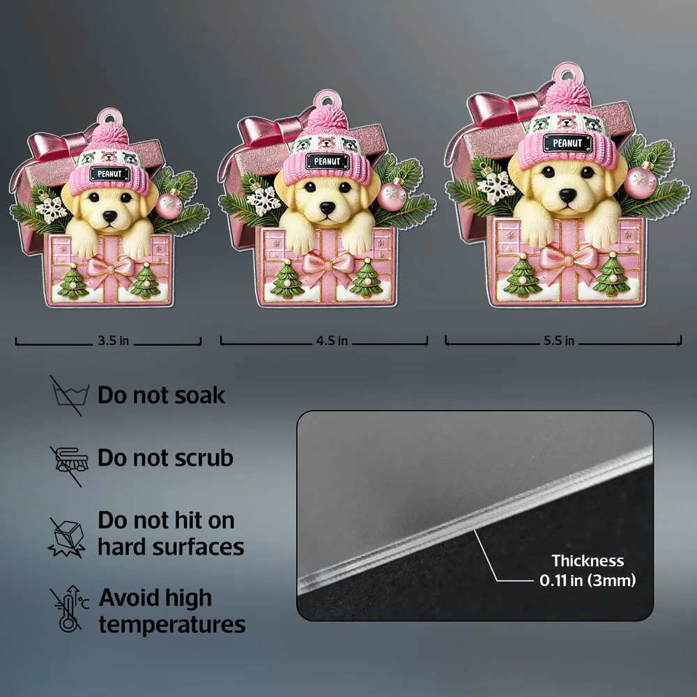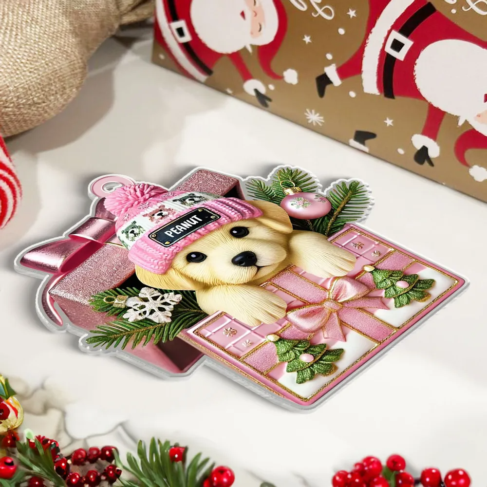 Cute Labrador Dog Inside Gift Box Custom 2D Flat Acrylic Christmas Pet Ornament