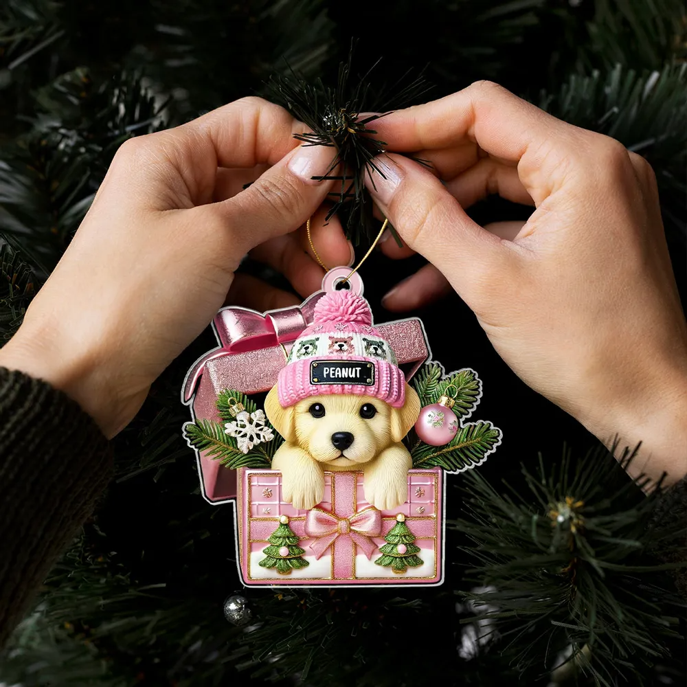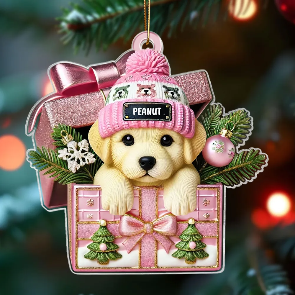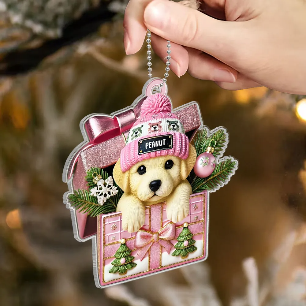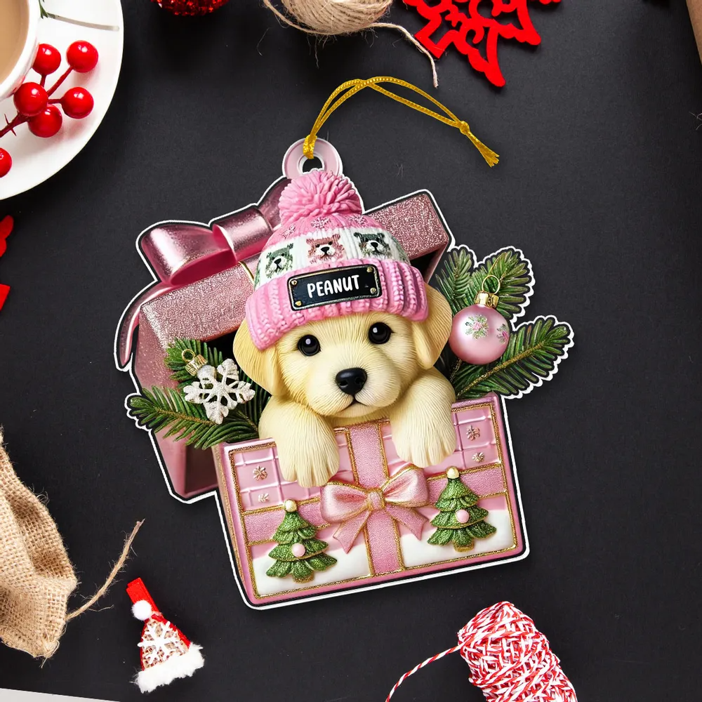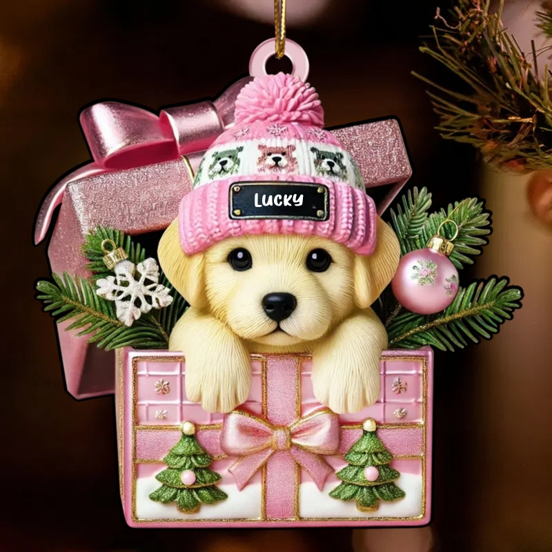 Cute Labrador Dog Inside Gift Box Custom 2D Flat Acrylic Christmas Pet Ornament