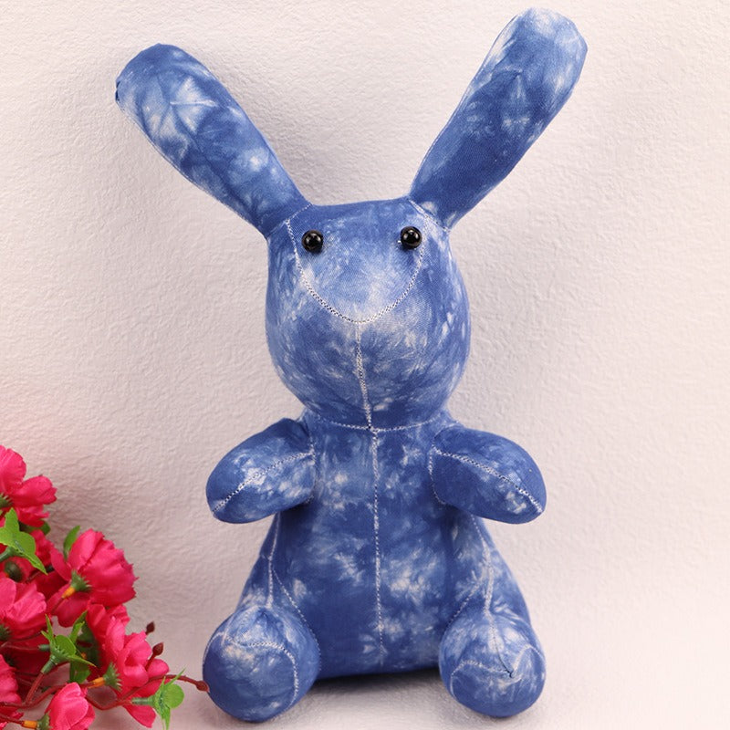 Handmade Indigo Tie-Dye Cotton Easter Bunny Plush Toy