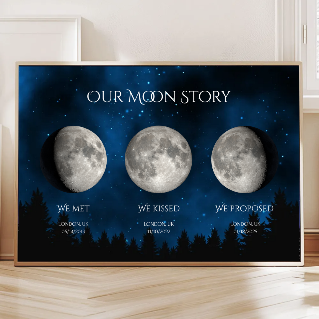 Our Moon Story We Met We Kissed We Proposed Custom Couple Moon Phases Canvas/Framed Poster/Poster