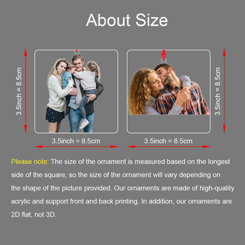 Celebrate the holiday season with our Personalized Acrylic Photo Ornament! Whether it's a beloved family photo, a cherished pet picture, or a special moment you want to remember, this ornament adds a personal and heartwarming touch to your décor. Perfect for hanging on your Christmas tree, rearview mirror, or displaying anywhere you like, it’s a versatile keepsake that will make your memories shine.