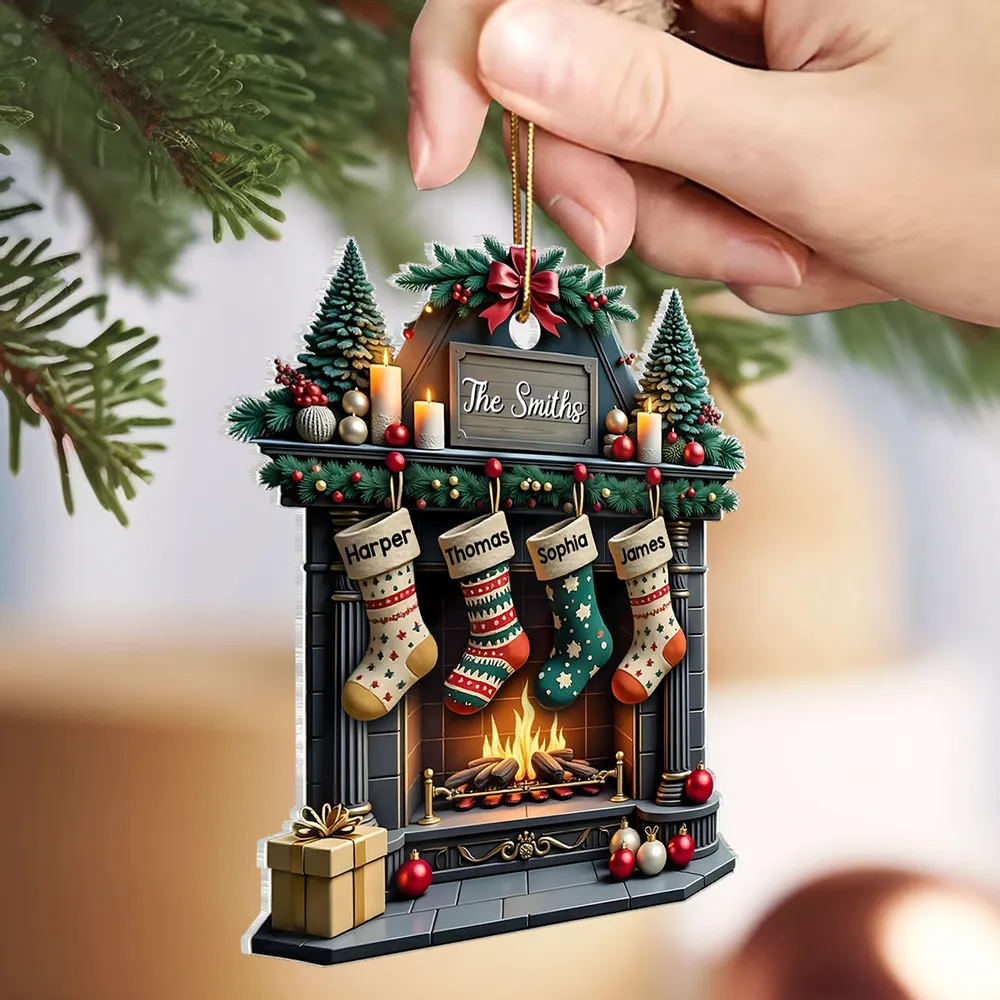 Vintage Retro Classic Fireplace Family Names Custom Acrylic Christmas Ornament